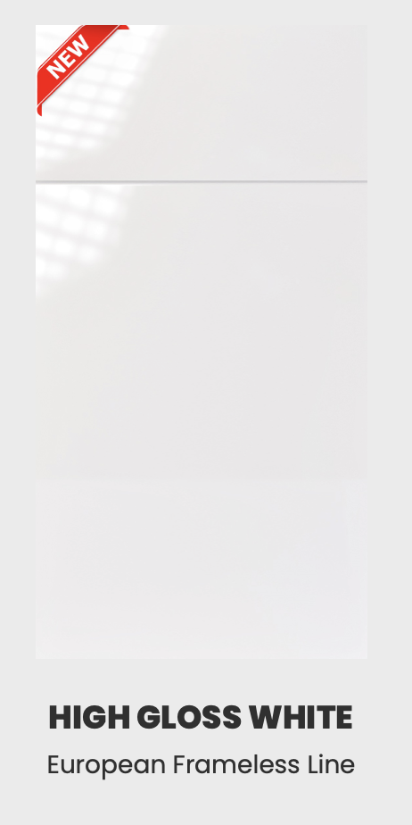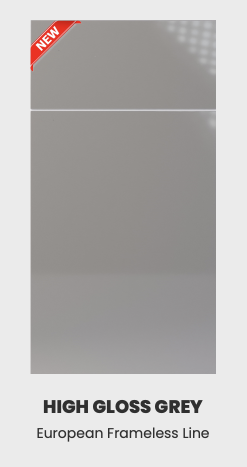 Packaging displaying a high gloss grey European frameless line, with a red corner banner labeled 'New' at the top left.